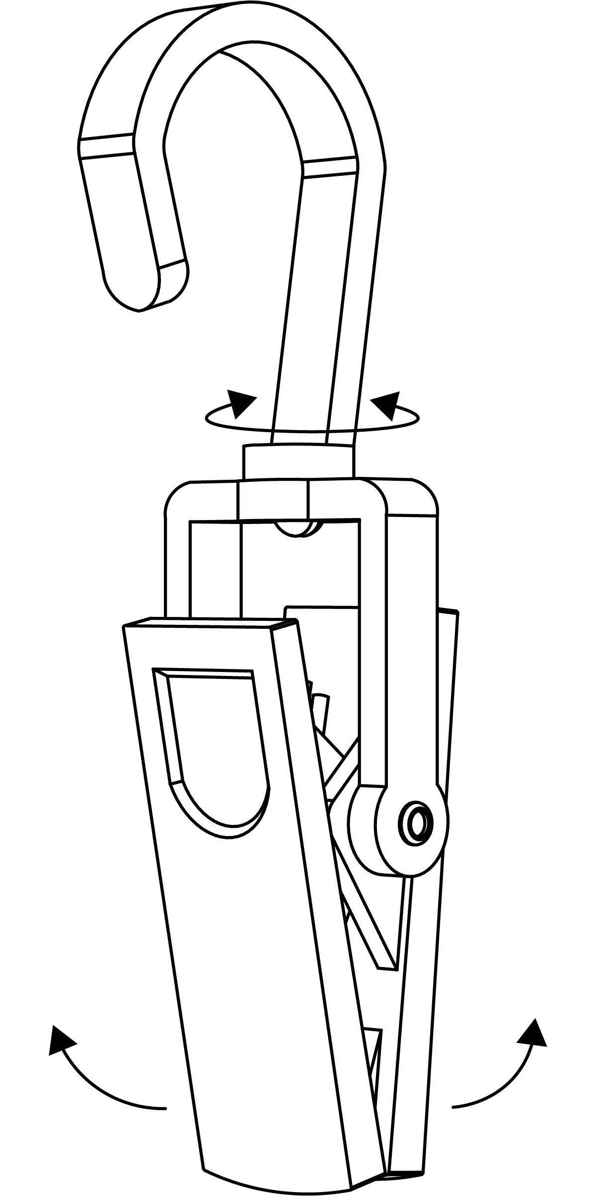 Strong, heavy duty oversized spring clip that securely holds just about anything. Open hook top design allows for hanging from plastic chain, rods, pipes or large diameter fixtures. Both ends swivel and rotate in opposite directions.