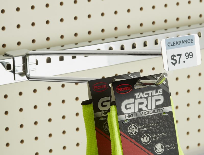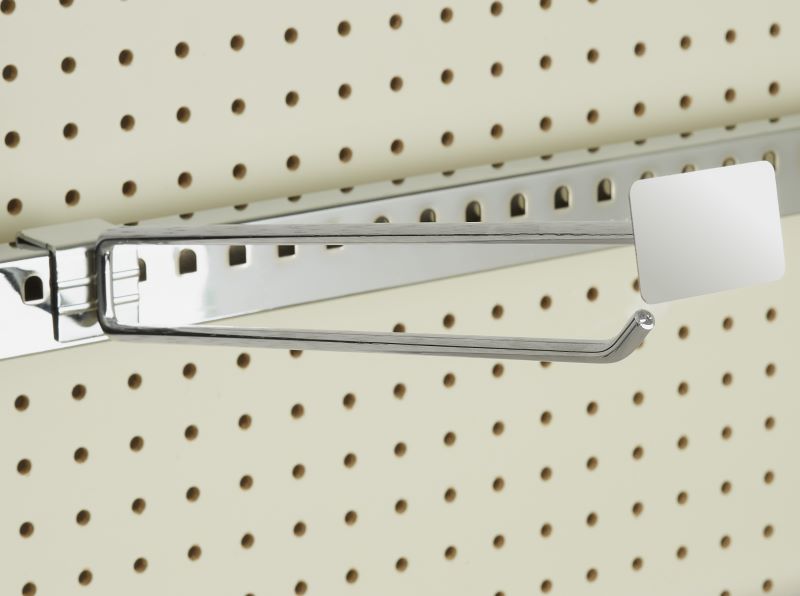 Hefty, one-piece metal hook is compatible with our Mega Bars (sold separately). Thicker wire than our traditional metal hooks, allowing heavier merchandise to hang. Scan plate in front accepts traditional adhesive labels. Simple all-wire design installs easily.